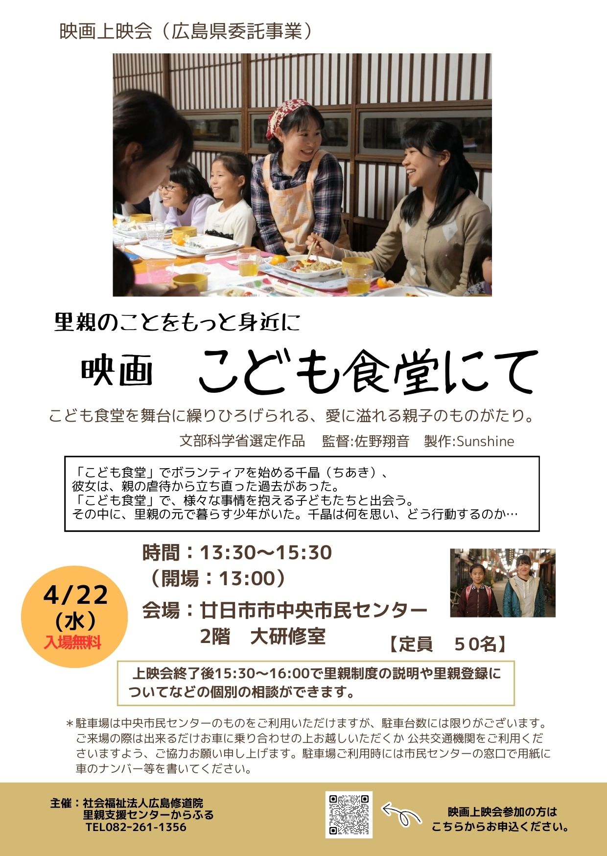 里親や社会的養護をテーマにした映画上映会を4月に廿日市市で開催します。